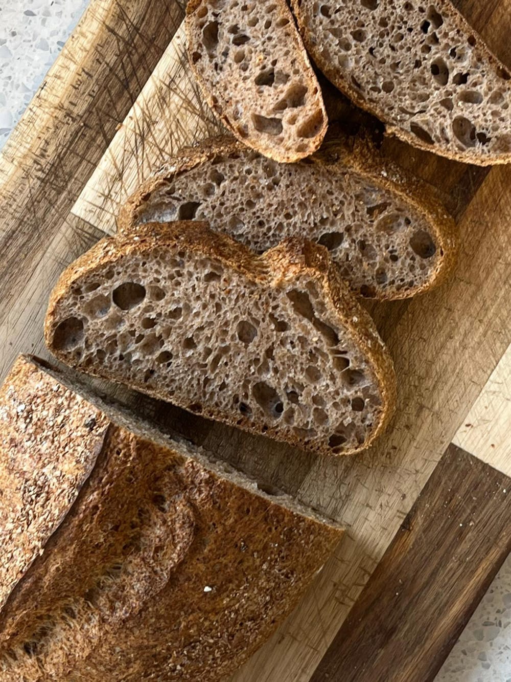W Madame Bread najlepsze rzeczy nie potrzebują rozbudowanych deklaracji. Nasze chleby powstają wyłącznie z trzech składników: wody, mąki i soli. O resztę dba czas. Długa fermentacja nadaje im głębię, naturalną trwałość i lekkość, której nie da się przyspieszyć ani zastąpić.